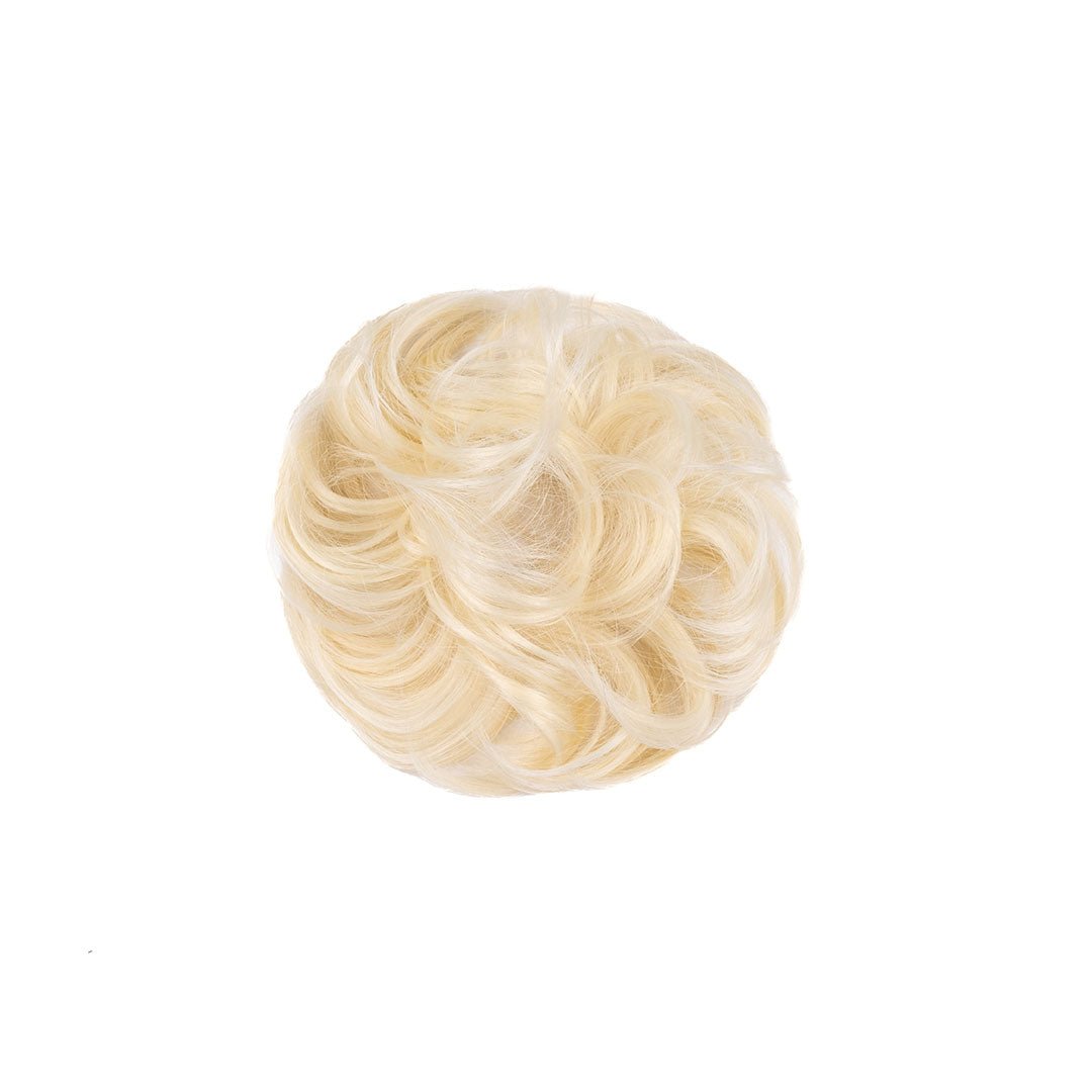 Amazing Hair Synthetic Scrunchie 613 Blonde is a high-quality heat resistant piece, cost effective, this eye-catching hair wrap is for an everyday style. Can be worn high on the head as an updo, at the nape, or in between. Just as with real hair, this soft, natural looking fibre can be curled or straightened with hot tools up to 180 degrees.
