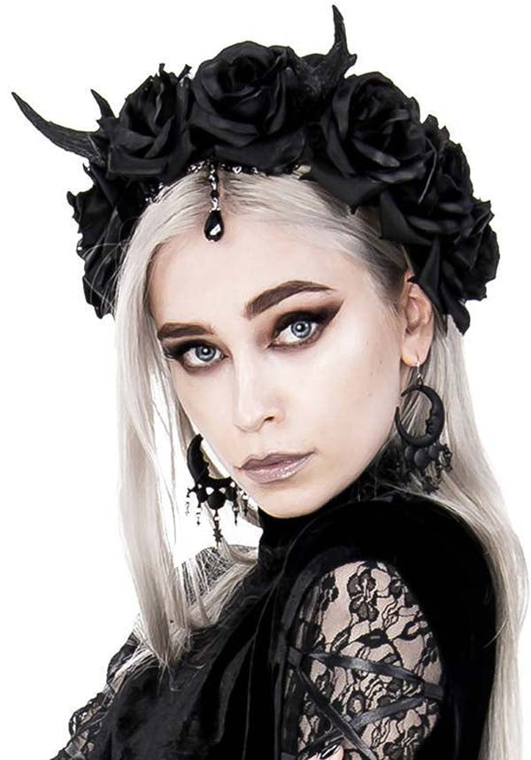 Gothic Wreath, Romantic Headwear - Antlers, Roses and Beads Headband