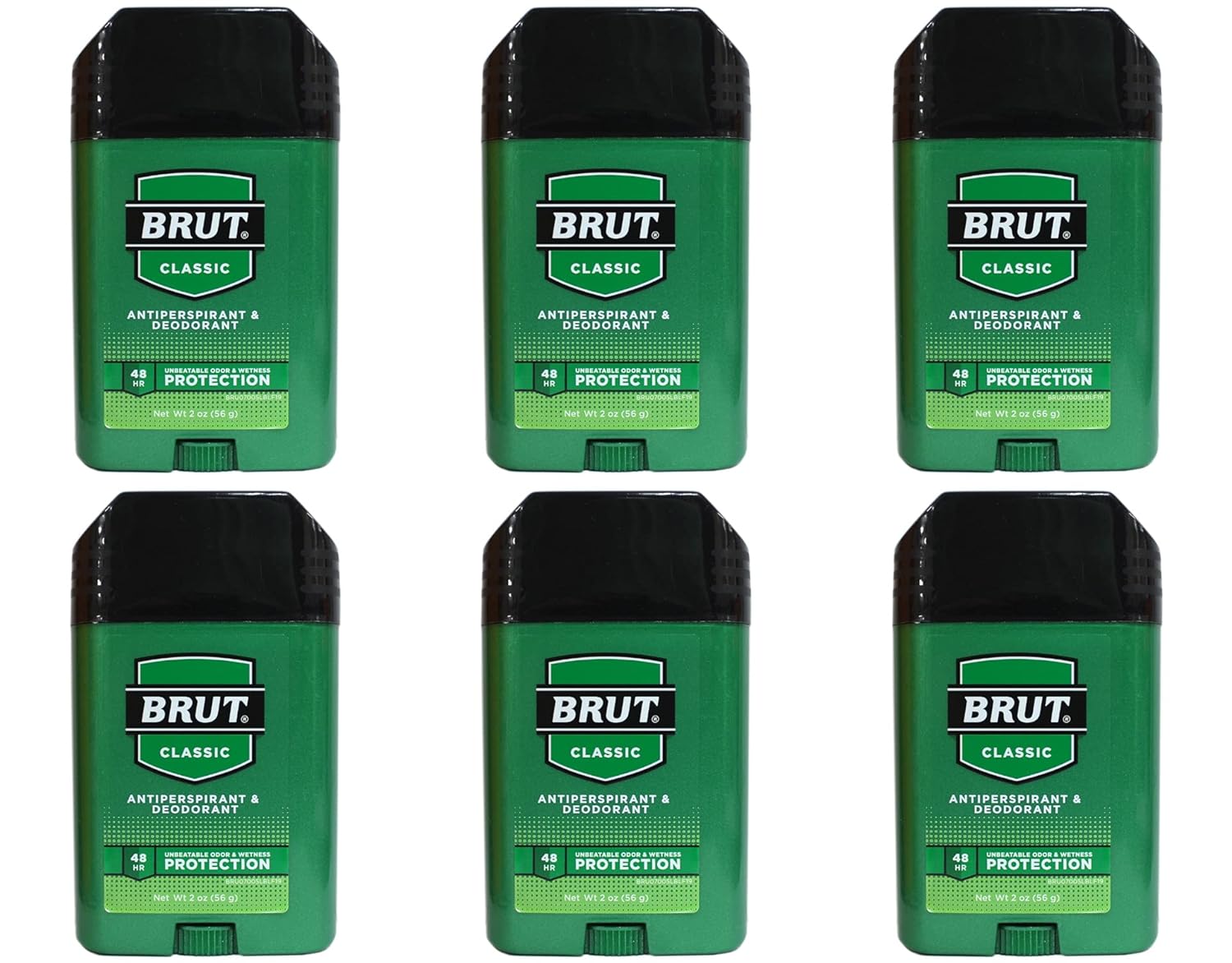 Brut Deodorant 2 Ounce Oval Solid Classic Scent(Anti-Perspirant) (59ml) (6 Pack)