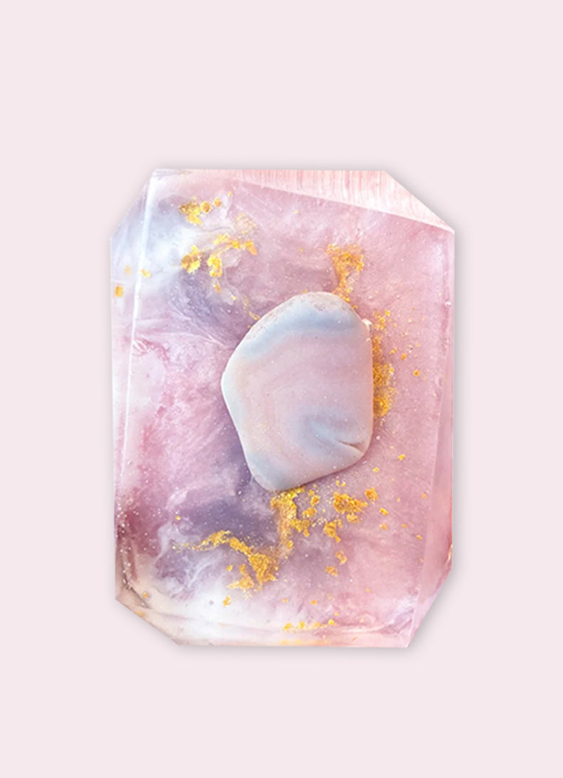 To find a balance by developing a deeper sense of self and building beautiful relationships with others without compromising their personal truths. Embedded inside is Pink Botswana Agate, which is a soothing stone that helps ease its owner through any transitions with positivity and grace. It has a slower frequency than other stones and its banded lace brings waves of comfort and peace and connects your heart to the portal of life. This stone connects to the heart chakra, supporting, stabilizing, and clearing one of the negative emotions so that one is able to view life with a heart-centered loving awareness.