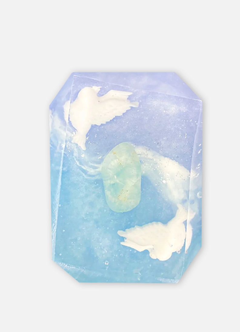 Everlasting Hope is a powerful soap for the heart, directly linked with the lover's card in tarot, this bar embodies the energy of two spirits joining each other as they move through life. Prehnite is one of the very few stones in the mineral kingdom that links our heart directly to our solar plexus chakra. Prehnite helps us lead with our hearts, which know what we truly want to do in this world, and how to find happiness. It can make you feel like you belong by actually changing your perspective and thought patterns and helping you live in peace and harmony. By having one's heart directly in touch with their personal will, our purest dreams become a priority. A free-spirited and flirtatious blend of soft jasmine paired with earthy notes of sage and ylang-ylang make this a fluttery and relaxing bar.