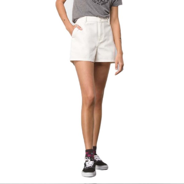 VANS WOMENS GROUND WORK SHORT Classic workwear styling gets an upgrade in the Ground Work Short. Made from cotton canvas, this relaxed fit short combines traditional workwear styling with a comfortable, relaxed fit. Other standout details include a hammer loop detail, front slash pockets, and back patch pockets with a woven Vans logo patch.