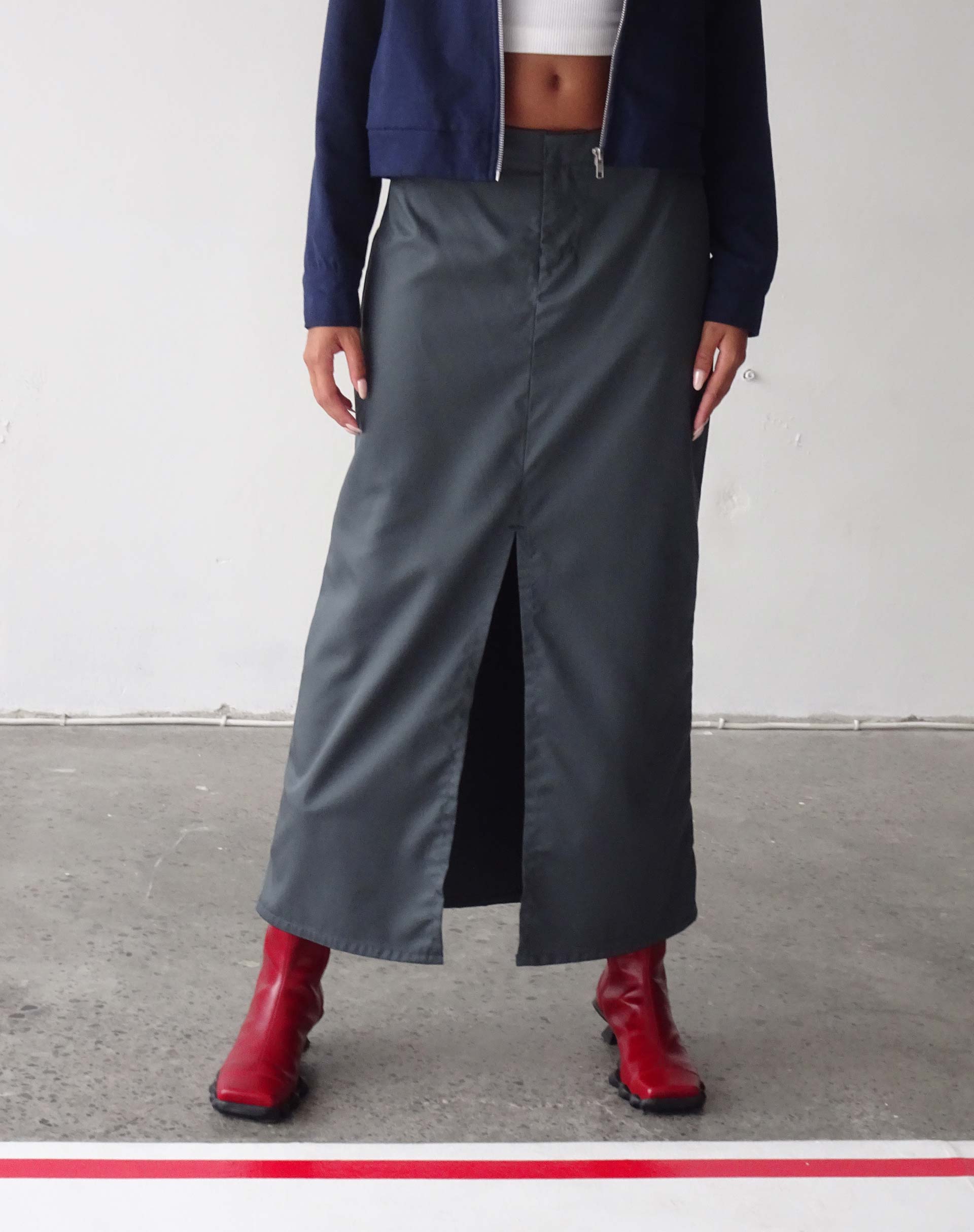 In a grey cotton drill fabric, our Haisley skirt features a loose, maxi fit with a zip fastening and front split hem. We love to style with our Olivia jacket.