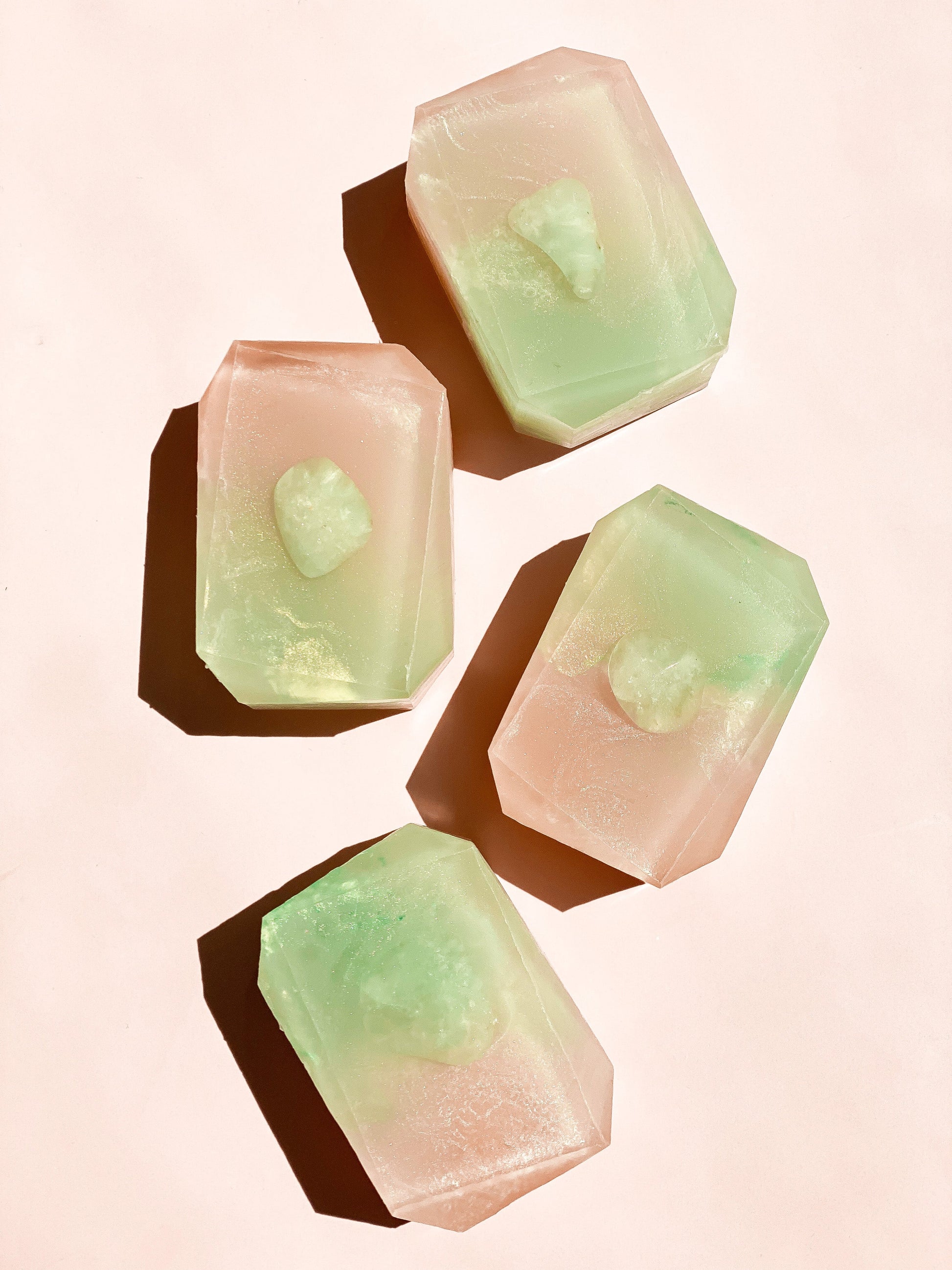 The Sanskrit name for the heart chakra is Anahata which translates to unstruck. It refers to the pure tone of the awakened heart chakra that is the resonant sound made without any two things striking. It is the sound of love present when there is no struggle. It is the tone of Divine Love, Balance, and Harmony. Prehnite is one of the very few stones in the mineral kingdom that links our heart directly to our solar plexus chakra. It is a stone to help heal the healer and enhances inner knowing by being directly attached to one’s own personal will. Prehnite helps us lead with our hearts. Our heart knows what we truly want to do in this world, and how to find happiness. It's the driving force behind each one of us as we move forward in chasing our goals and desires. By having one's heart directly in touch with their personal will, our purest dreams become a priority. We crafted up a perfect heart chakra opener blend so the second you smell it you can feel your stress slip away. When you breathe it in, it feels like a warm embrace with notes of sandalwood, vanilla, and quince bringing you comfort. As you exhale the entire scent profile changes, you breathe out cool and relaxing notes of coconut, lavender, jasmine, and eucalyptus! Together these individual scents combine to create a wave of Heart opening and healing within a single breathe.