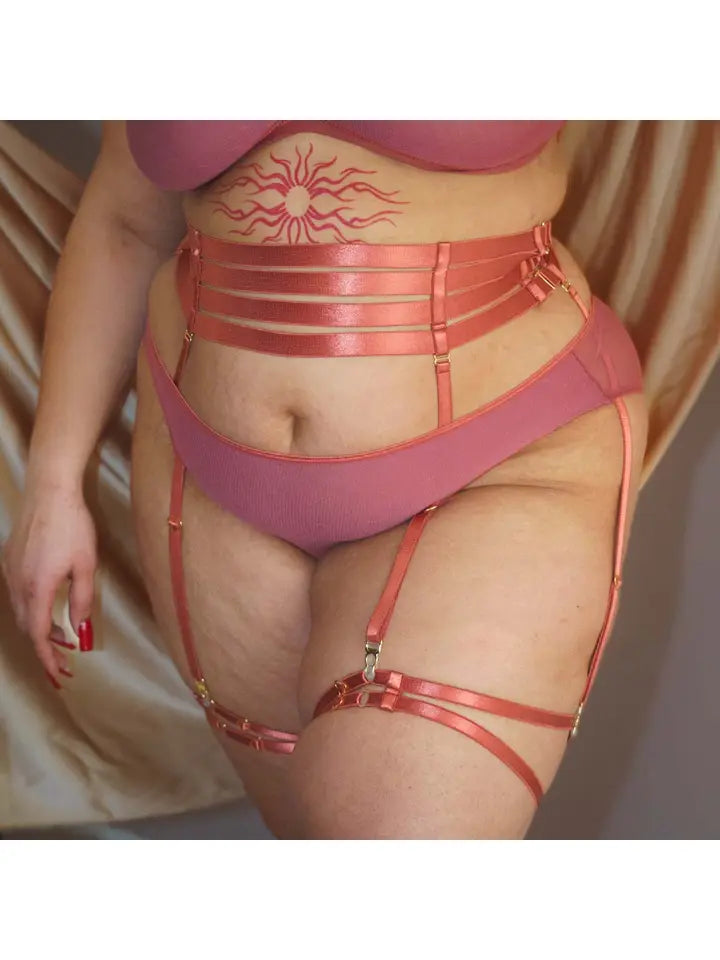 Hearts of Venus Strappy Waist Cinching Garter in Copper Rose