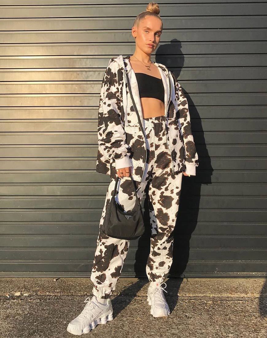 Cow print is a major moo'd this season and the Hollack hoodie is perfect for those casual days! Featuring a loose fit, zip through front and elastic hemline. For instant impact pair it with the matching Basta jogger and chunky white trainers.