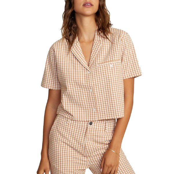 RVCA Jackie SS Blouse Features Cotton Cropped fit Button down front Fabric Content 100 Cotton