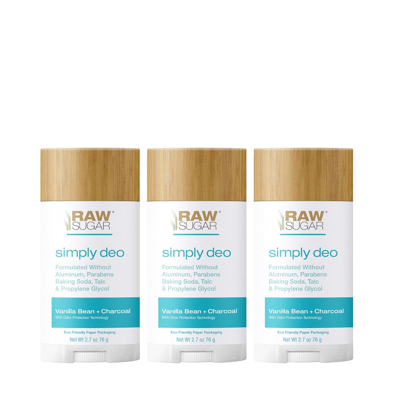 Raw Sugar Deodorant Bundle: Get confidently clean, eco-friendly odor protection with this Raw Sugar Aluminum Free Deodorant bundle that includes a pack of 3 Vanilla Bean + Charcoal deodorants for a confident you