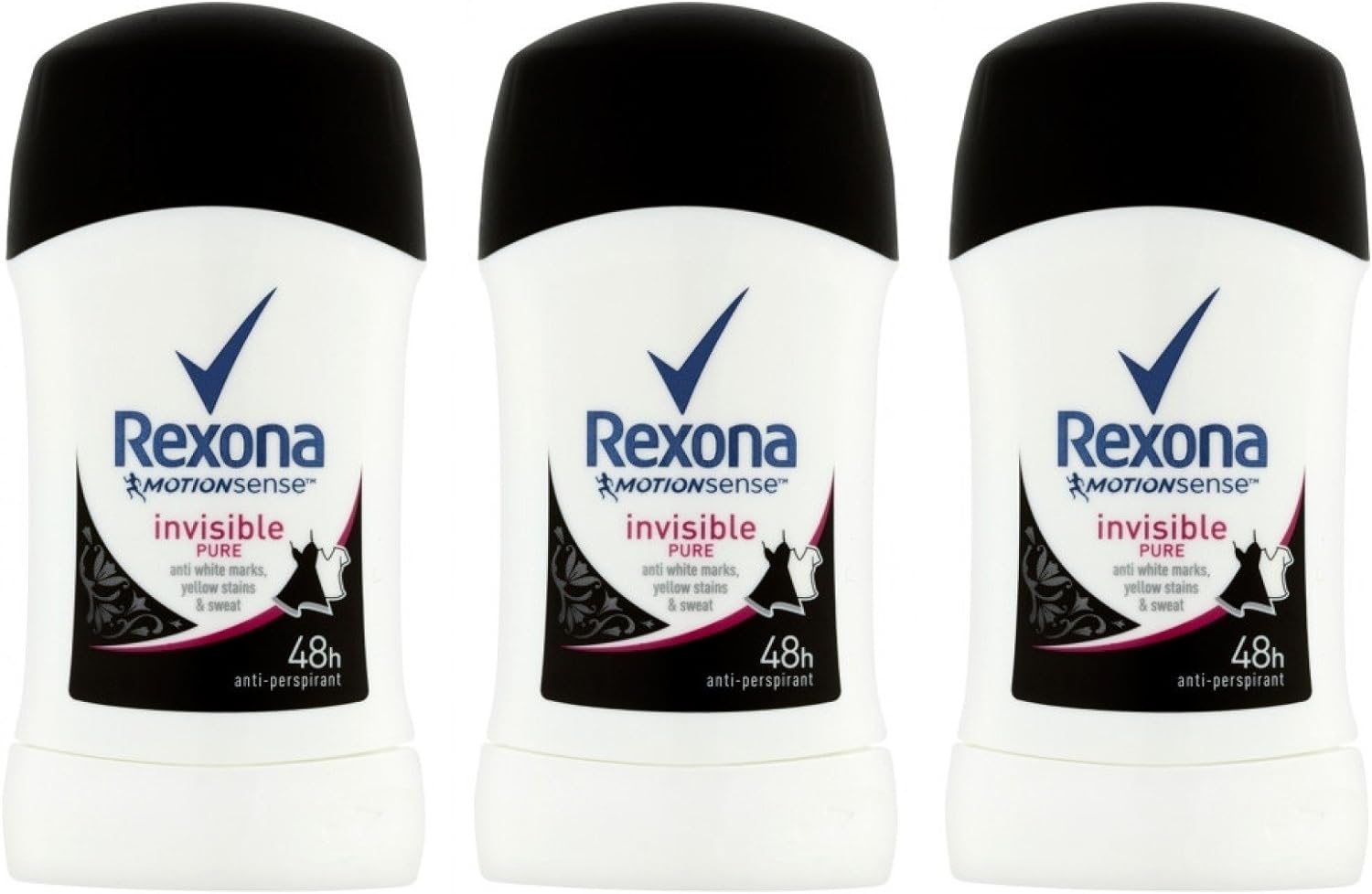 Rexona Womens Motion Sense Invisible Pure Deodorant Stick 40ml / 1.35 Oz Travel Size (Pack of 3)