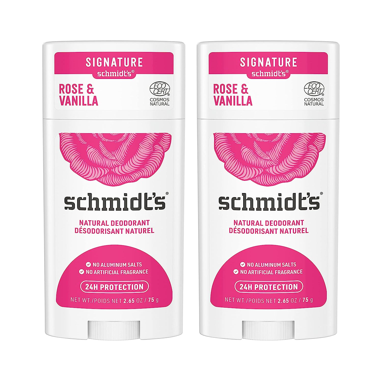 Schmidt's Aluminum Free Natural Deodorant for Women and Men, Rose and Vanilla with 24 Hour Odor Protection, Certified Natural, Vegan, Cruelty Free, 2.65 oz Pack of 2