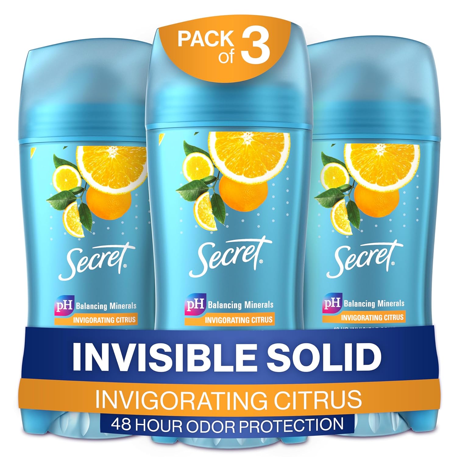 Secret Invisible Solid Antiperspirant and Deodorant, Citrus Scent, 2.6 oz (Pack of 3)