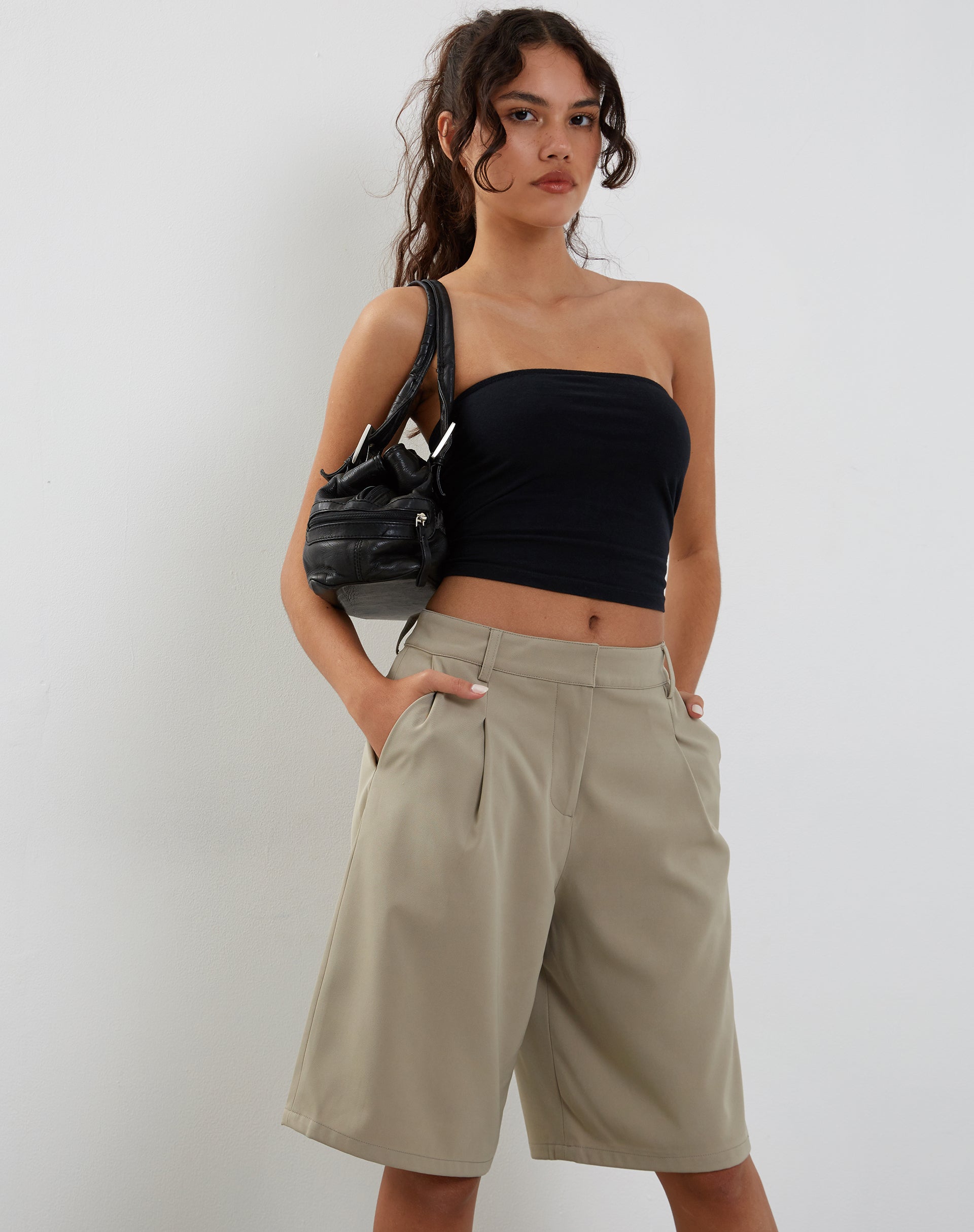 A combination of smart and fun, these tailored shorts are the perfect bottoms for warm spring evenings. Setya falls just above the knee with a low waistline for some sophisticated style. Style with the Shae bandeau for a simple but cute 'fit.