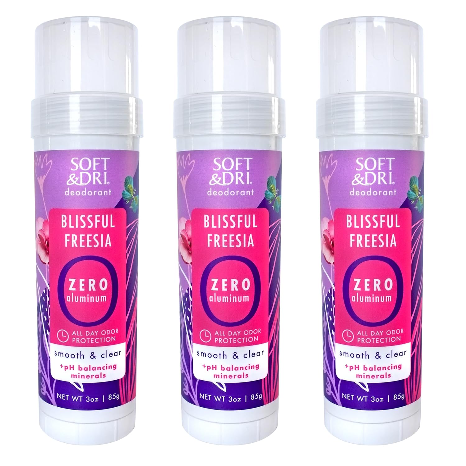 Soft & Dri Blissful Freesia Aluminum Free Deodorant, 3 oz, Smooth and Clear Stick, pH Balancing Minerals, Pack of 3