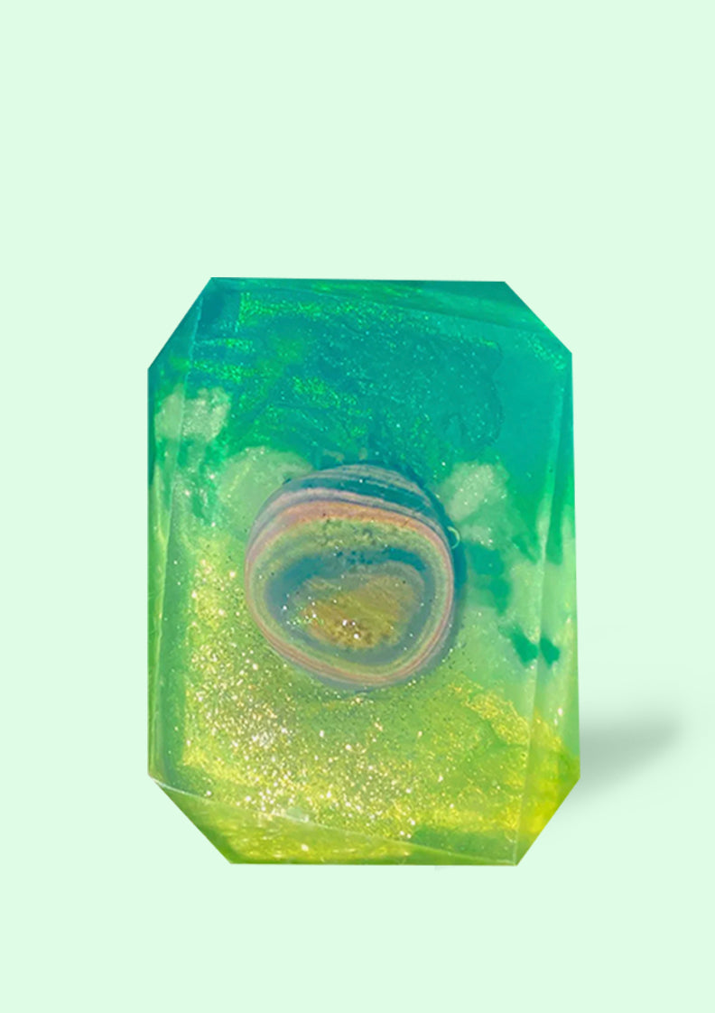 Indulge in the luxurious aroma of Soft Spot, this soap was crafted for connoisseurs of the finest hygiene regimen. Feel the delicate sensuality of cocoa butter and cashmere linger on your skin, transporting you into a world of unparalleled comfort and opulence. Embedded with the energy of Rainbow Obsidian, this stone shines its multicolored iridescence hue the second it touches the sunlight. With the use of Rainbow Obsidian, our existence becomes a vessel for divine energy. We open ourselves to messages from the beyond, allow the intangible to materialize, and grow in the process to reach our ultimate capacity for magic. With Rainbow Obsidian, we are guided and reminded of our bloodline to the cosmic divine space from whence we came. Experience for yourself why Soft Spot is the luxury choice for your daily cleansing.