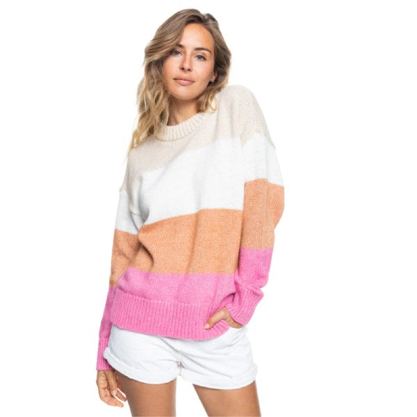 ROXY WOMENS TOO FAR CREW SWEATSHIRT Sweater weather is always a vibe, and you can catch it with the Too Far Sweatshirt for women. This ROXY original is crafted from heavyweight recycled wool blend fabric for an Eco-conscious construction that's kinder on the planet. The classic design features a color-block design, dropped shoulders, and rib knit collar, cuffs, and hem. Fabric: Heavyweight acrylic recycled polyester wool blend fabric Jersey knitting Yarn dyed bold stripes Fit: Dropped shoulders Rib on collar and on bottom body and sleeves 60 Acrylic, 37 Recycled Polyester, 3 Wool