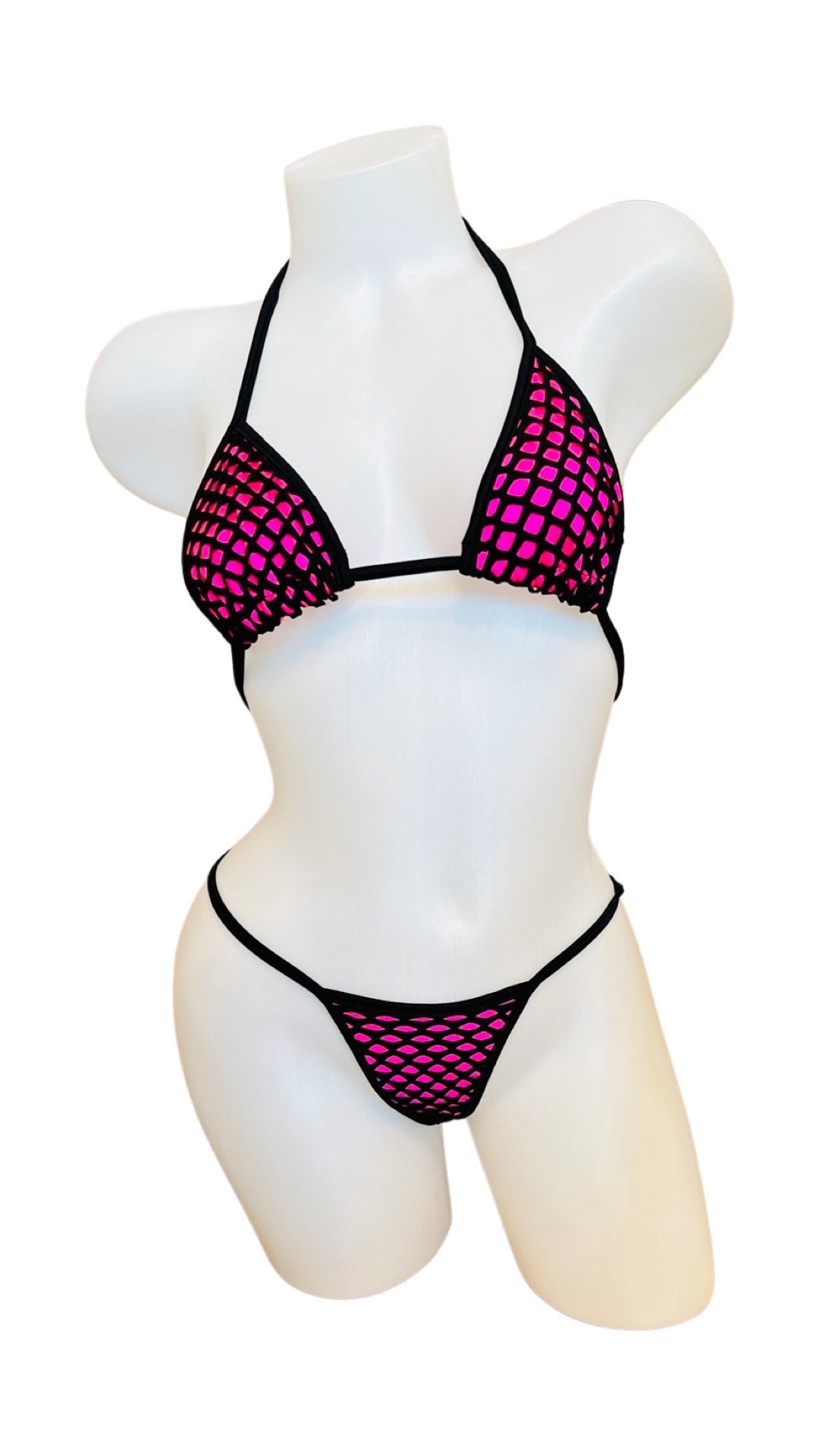 Two Tone Fishnet Bikini - Black/Pink