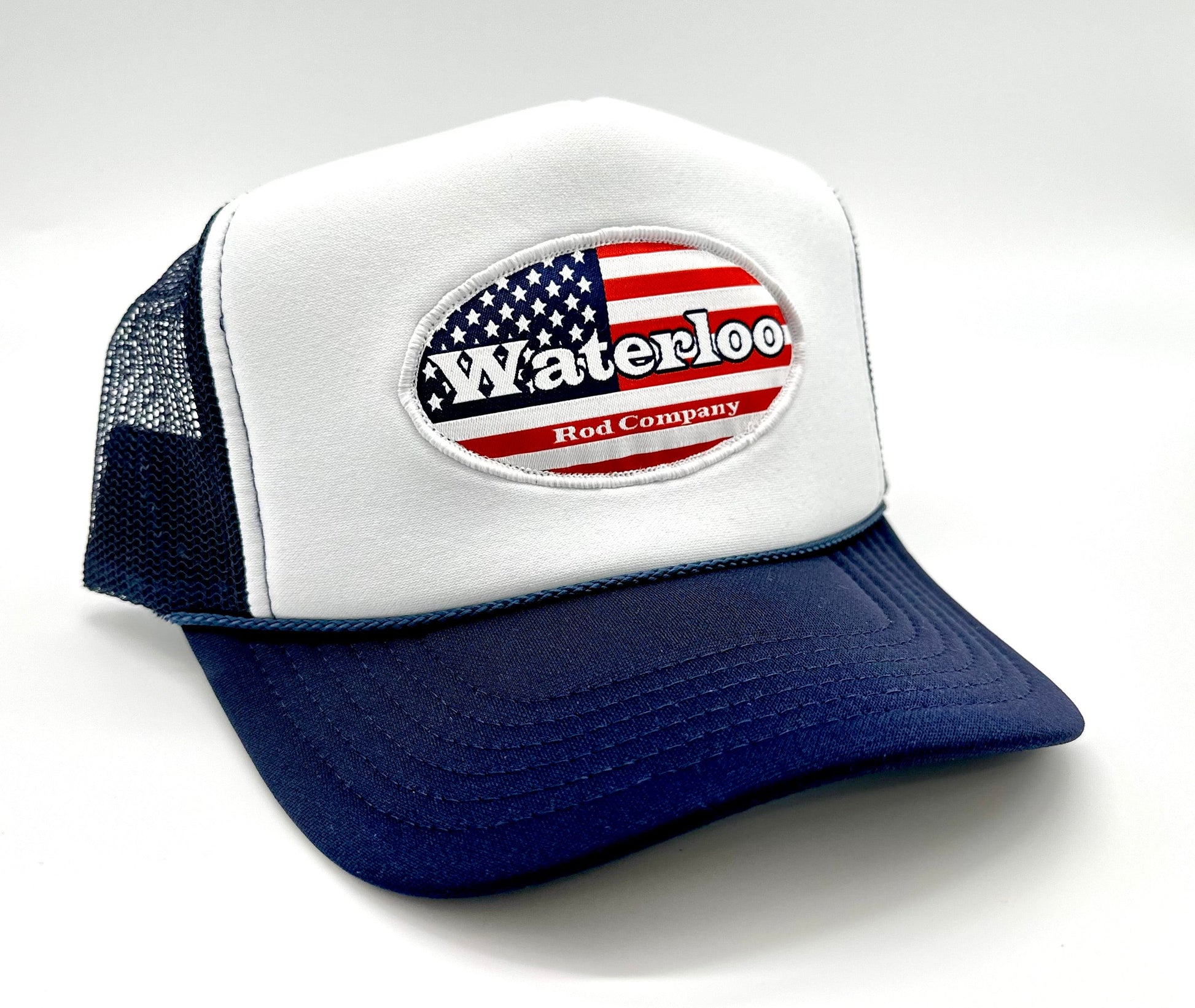 Waterloo Navy, White, and Navy Foam Front Cap - Flag Patch