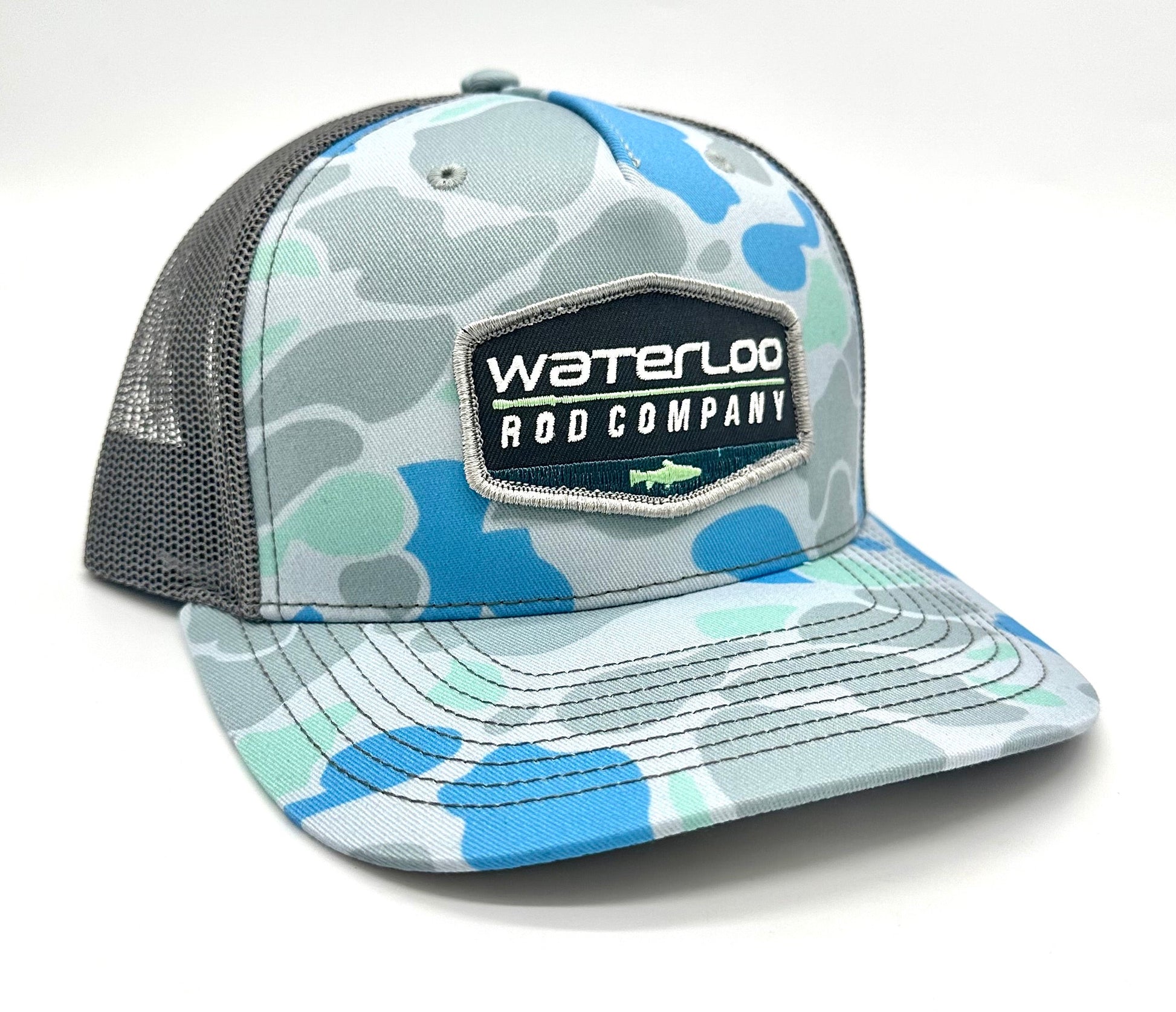 Waterloo Saltwater Duck Camo and Charcoal Cap - Blue Badge Patch