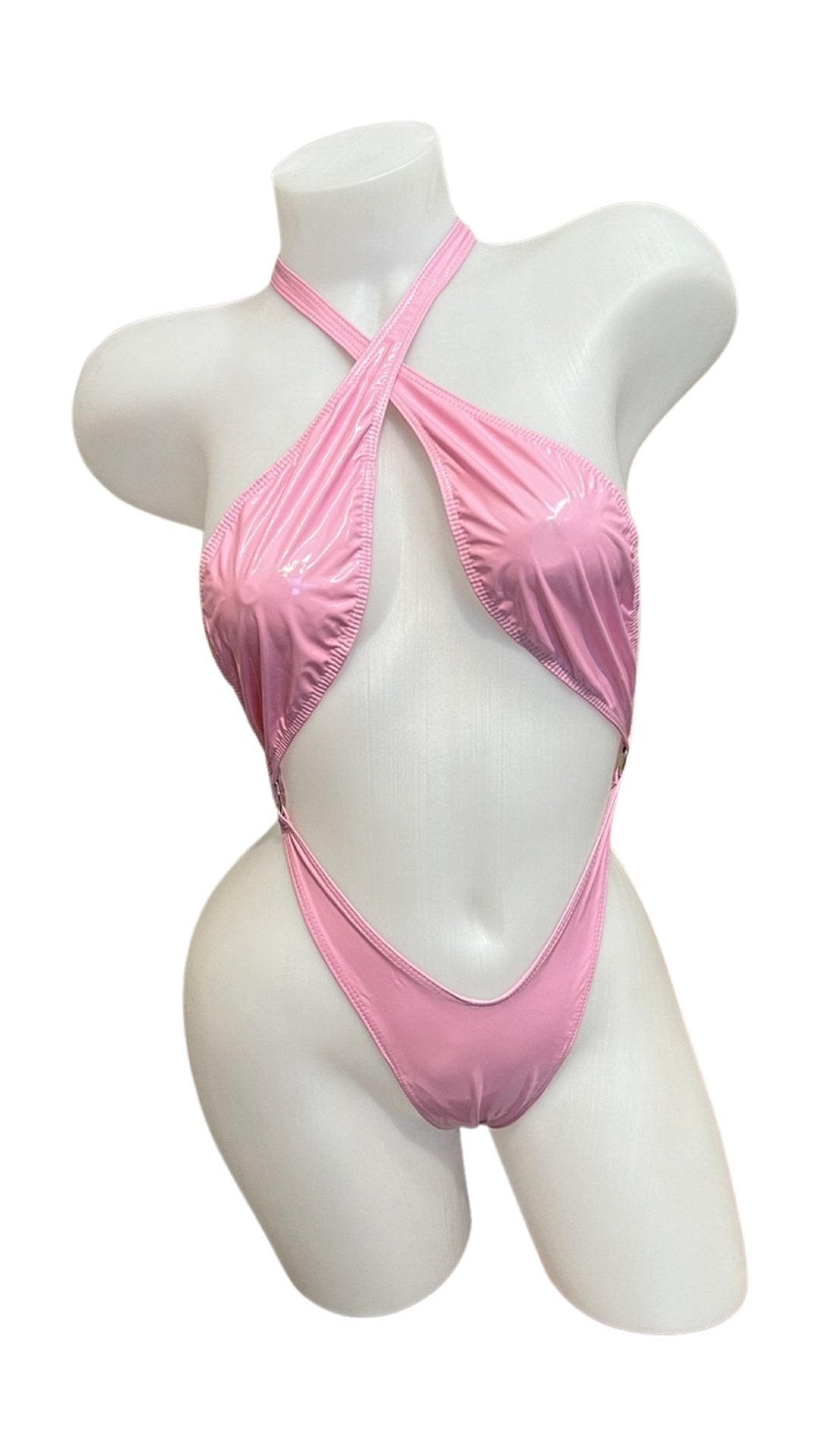 Vinyl Criss Cross Sling Shot - Baby Pink