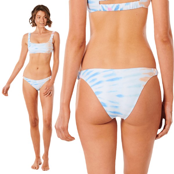 Rip Curl Wipeout Cheeky Coverage Bikini Bottom The Wipeout Collection has arrived with a fun color pop for summer. The entire collection is full of bright, pastel tie dye prints and flattering cuts for our beach gals. The Wipeout Cheeky Coverage Bikini Bottom is fully lined, offers cheeky coverage and has a gather strap detail at the sides. Features Cheeky coverage Gather straps at side Fully lined Placement printed Metal logo trim Microfiber